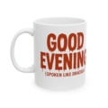A Good Evening (spoken like Dracula) coffee mug, perfect for vampire enthusiasts or Halloween lovers. This spooky mug gives off a mysterious and fun vibe, ideal for sipping your favorite beverages in the evening. Great for Halloween parties, horror movie marathons, or as a unique gift for fans of the supernatural.