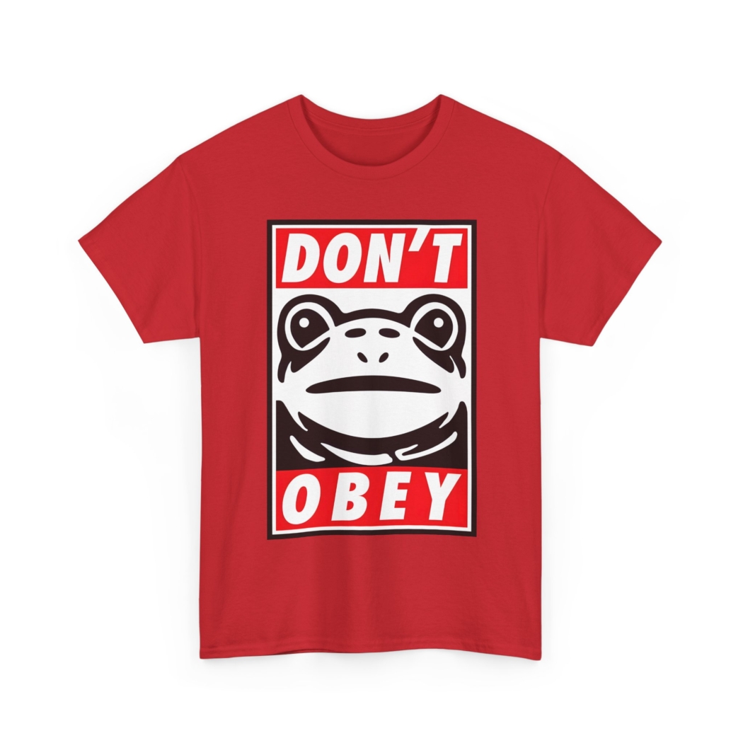 Stand up and stand proud for freedom with this bold and vibrant “Don’t Obey” shirt. This stylish Unisex Heavy Cotton Tee is designed for comfort and self-expression whether you’re hanging with friends or going to a No Kings protest. This versatile tee embodies a unique vibe, perfect for those who want to stand out while embracing a casual look. Its standout design and classic fit make it an ideal choice for everyday wear, whether you’re holding a sign on the corner, attending a protest, or simply lounging at home. The tee speaks to free spirits and rebels, making it a fantastic gift for creative souls and young adults. Great for various occasions such as birthdays, festivals, or just to treat yourself on a casual day. Celebrate individuality and comfort with this essential addition to any wardrobe!