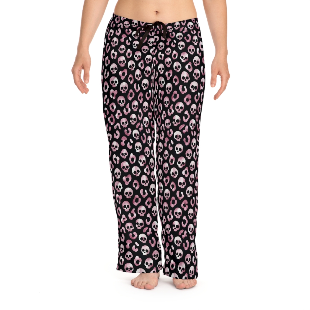 Gothic Skull Pattern Women's Pajama Pants, Loungewear, Gift for Her, Sleepwear, Halloween Theme, Cozy Lounge Pants