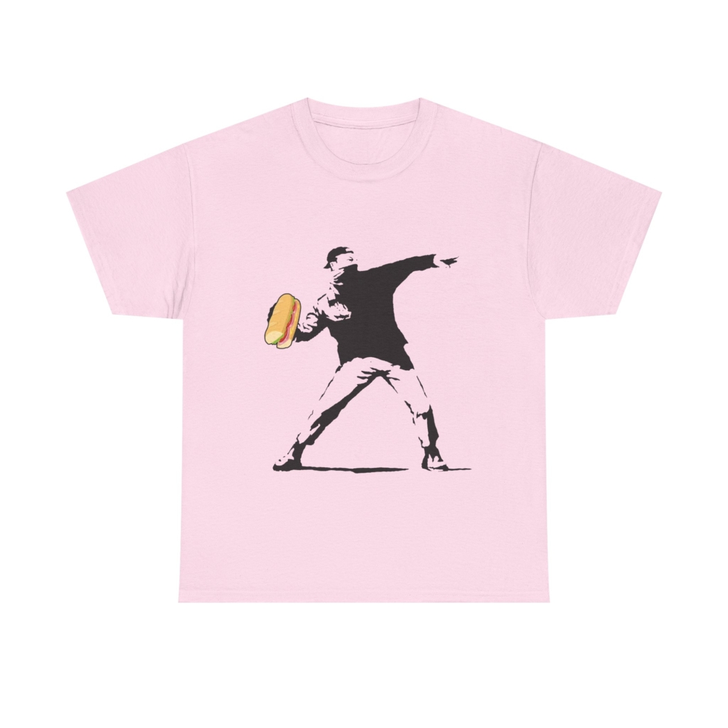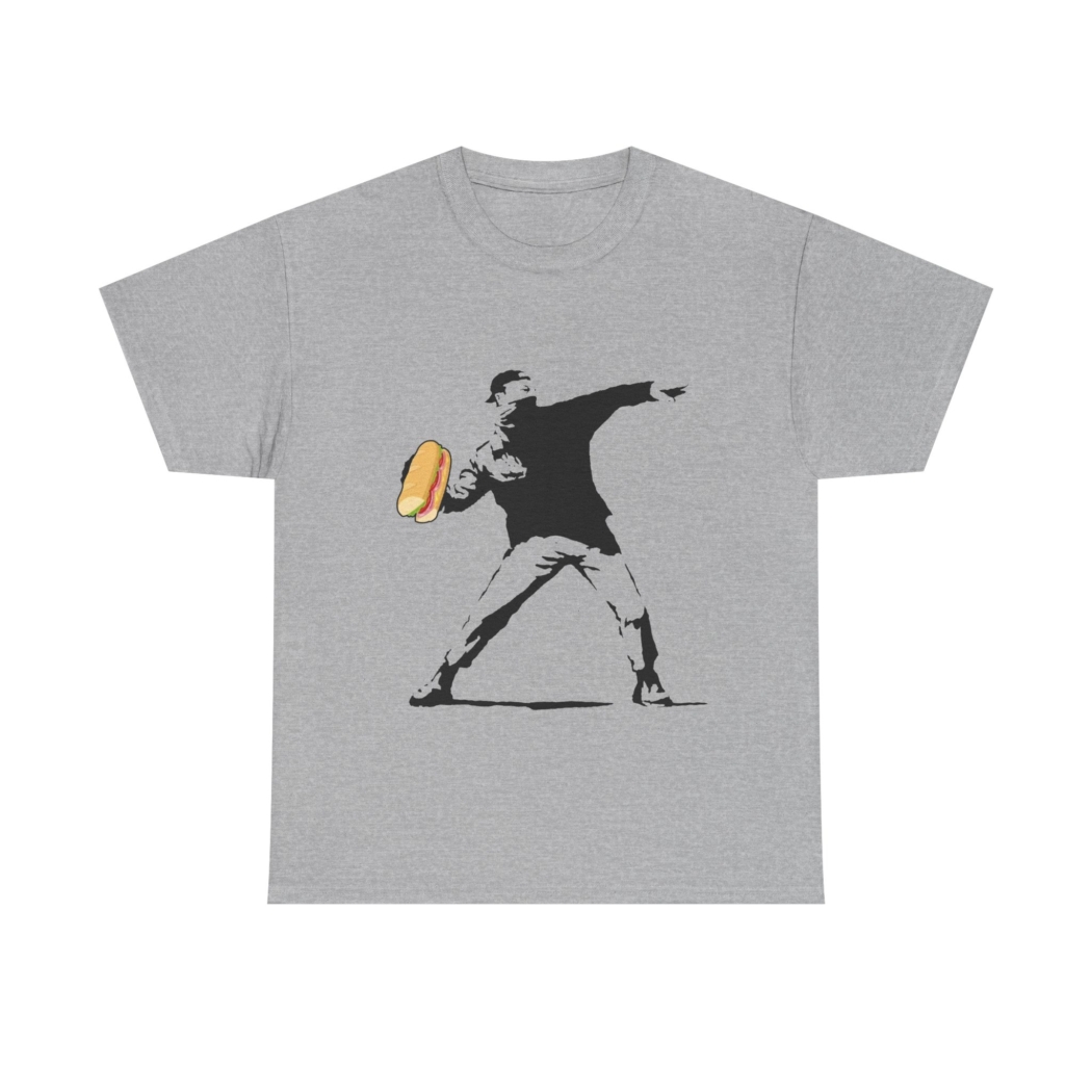 Express your rebellion against tyranny with this Resist Banksy Throwing Sub Sandwich Tee. This tee exudes a cool and edgy vibe perfect for art enthusiasts, rebels, and those who appreciate unique designs. Ideal for casual wear, art events, protests, and everyday occasions.